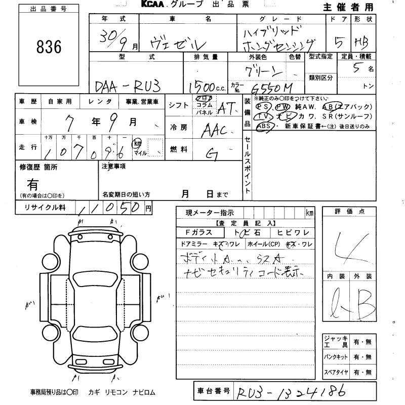 HONDA VEZEL - лот 836
