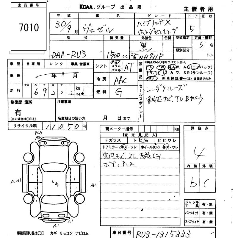 HONDA VEZEL - лот 7010