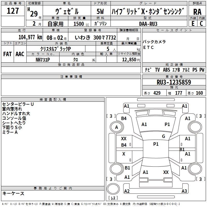 HONDA VEZEL - лот 127