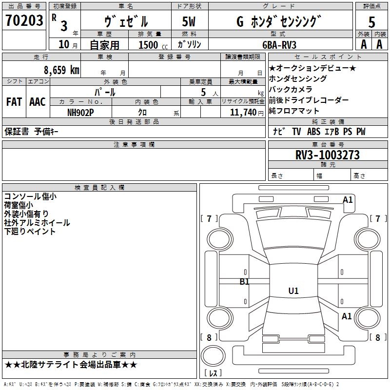 HONDA VEZEL - лот 70203