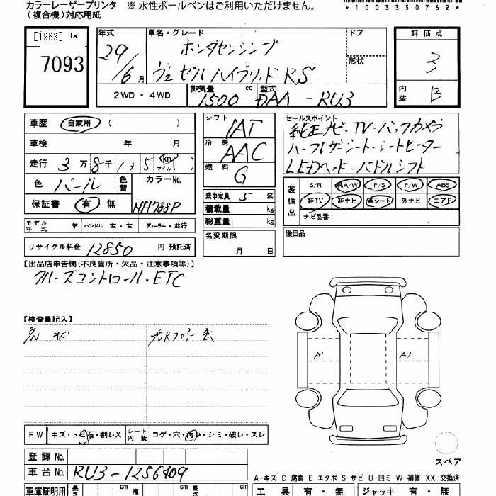 HONDA VEZEL - лот 7093
