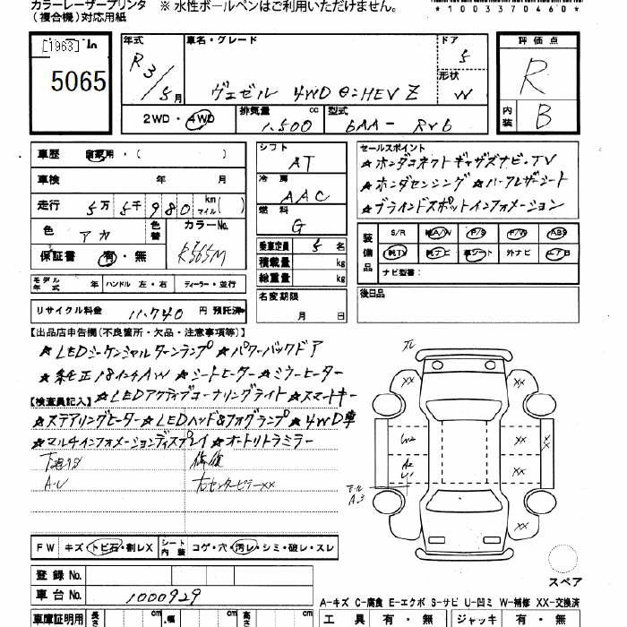 HONDA VEZEL - лот 5065