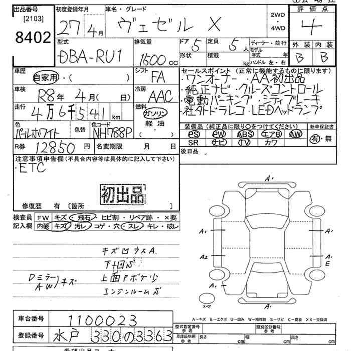 HONDA VEZEL - лот 8402