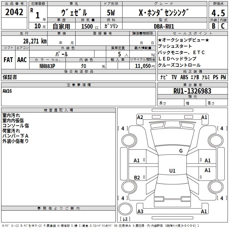 HONDA VEZEL - лот 2042