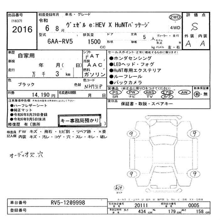 HONDA VEZEL - лот 2016