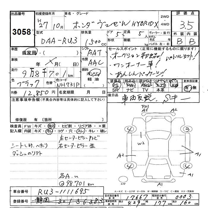 HONDA VEZEL - лот 3058