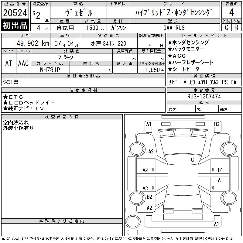HONDA VEZEL - лот 20524