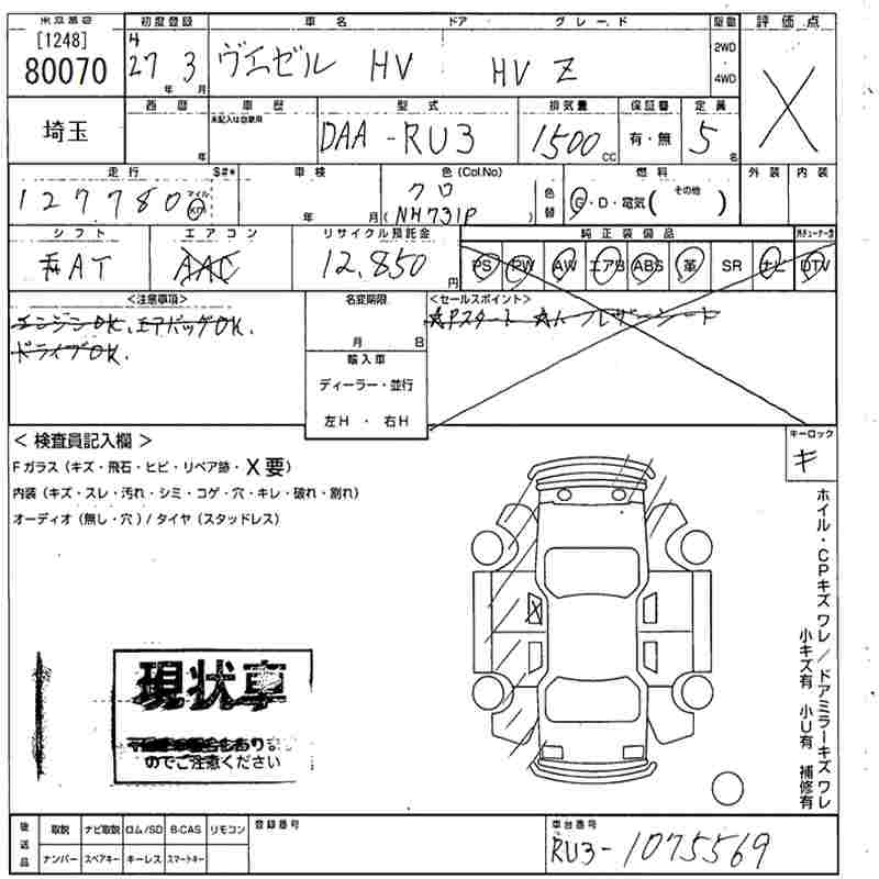 HONDA VEZEL - лот 80070