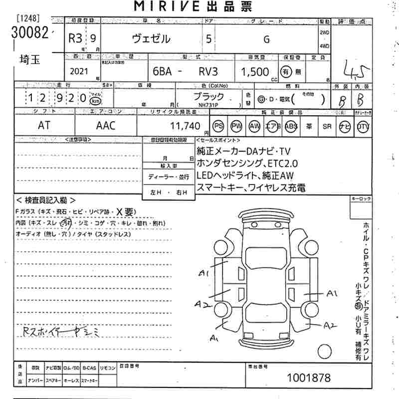 HONDA VEZEL - лот 30082