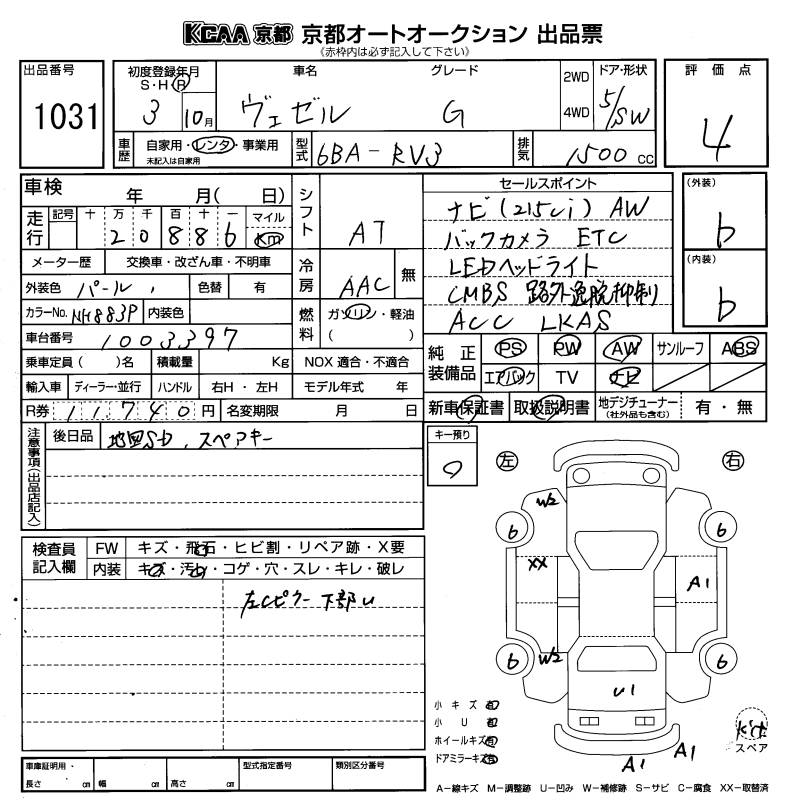 HONDA VEZEL - лот 1031