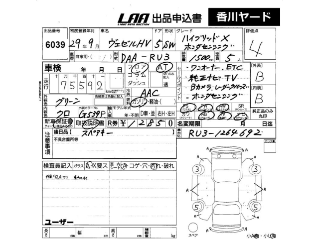 HONDA VEZEL - лот 6039