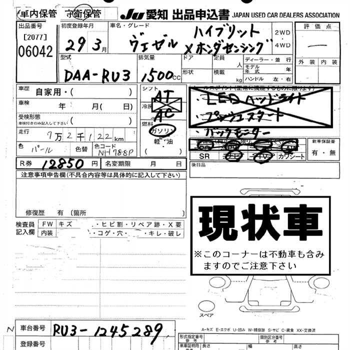 HONDA VEZEL - лот 6042