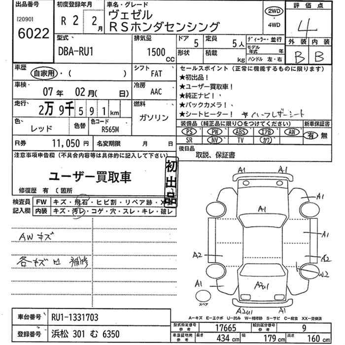HONDA VEZEL - лот 6022