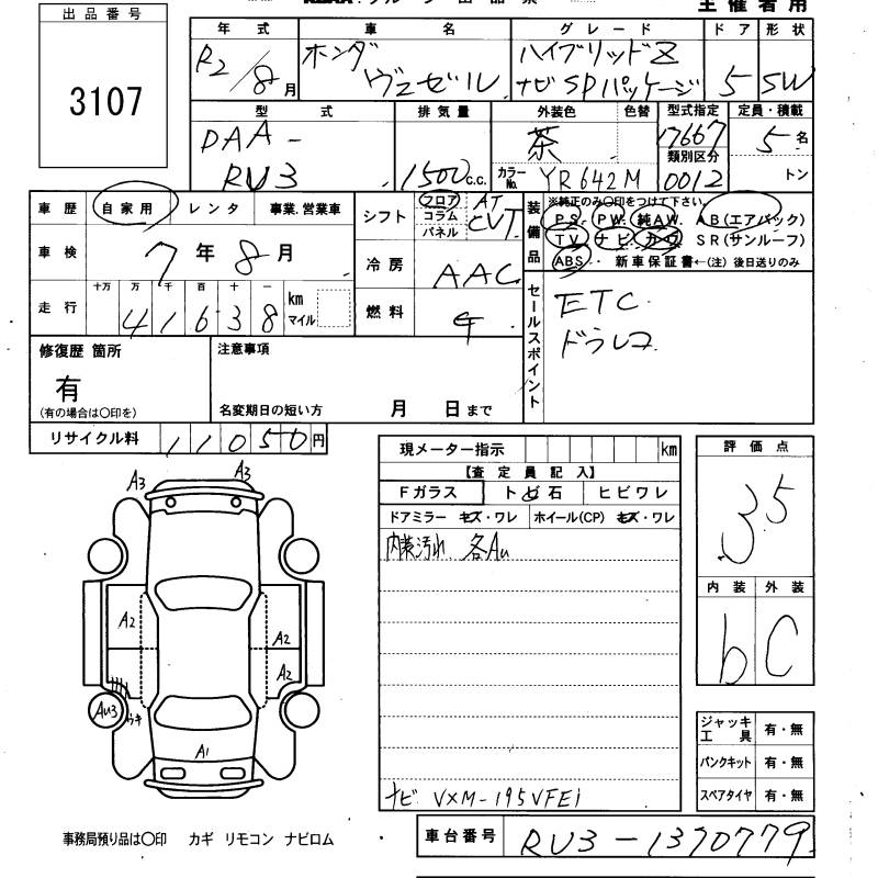 HONDA VEZEL - лот 3107