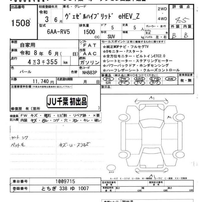 HONDA VEZEL - лот 1508