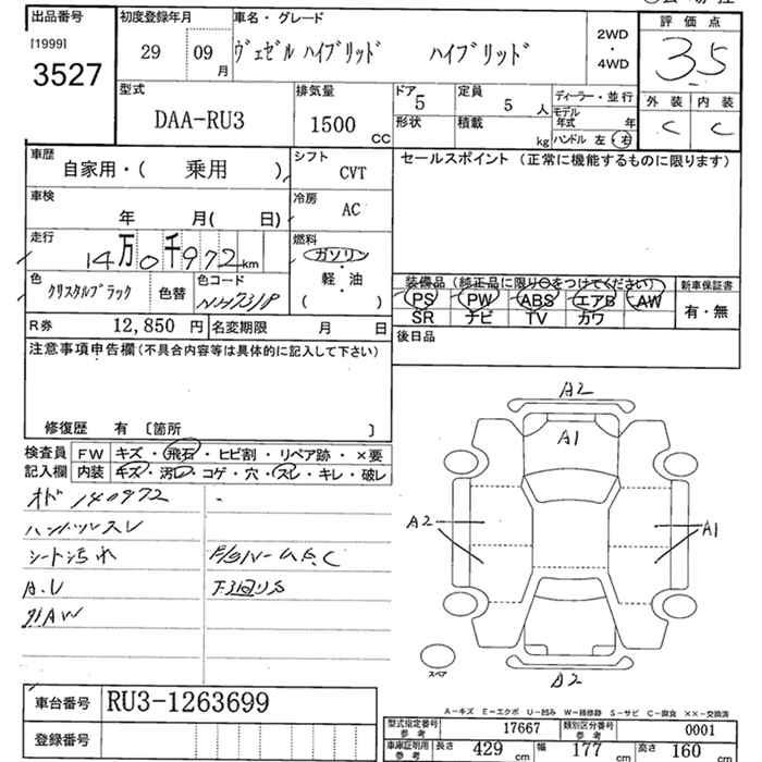 HONDA VEZEL - лот 3527