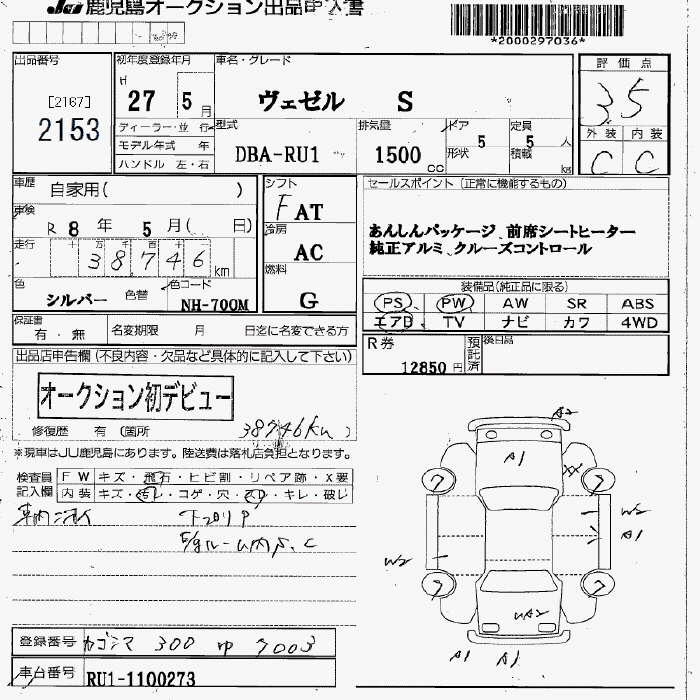 HONDA VEZEL - лот 2153
