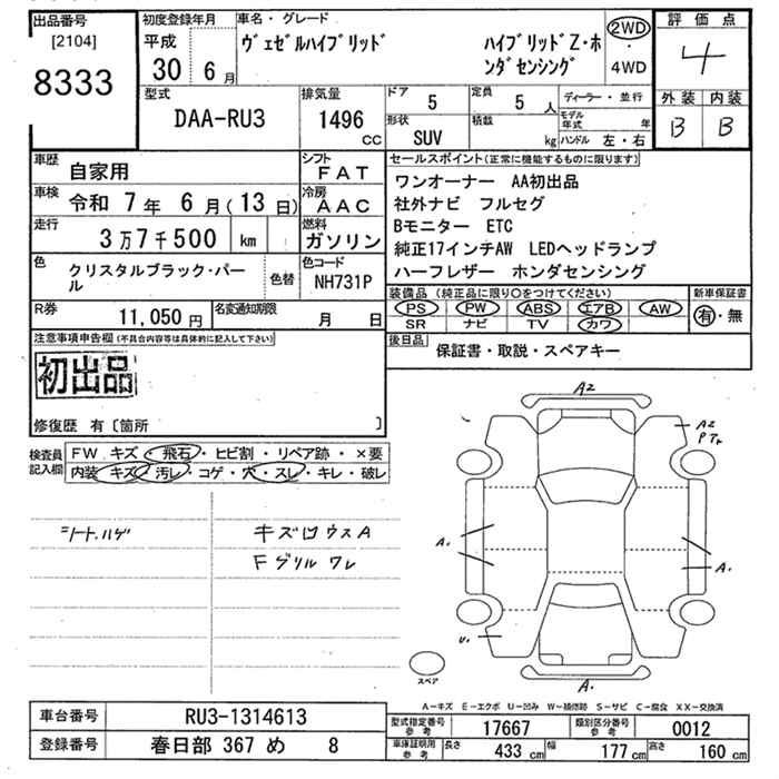 HONDA VEZEL - лот 8333