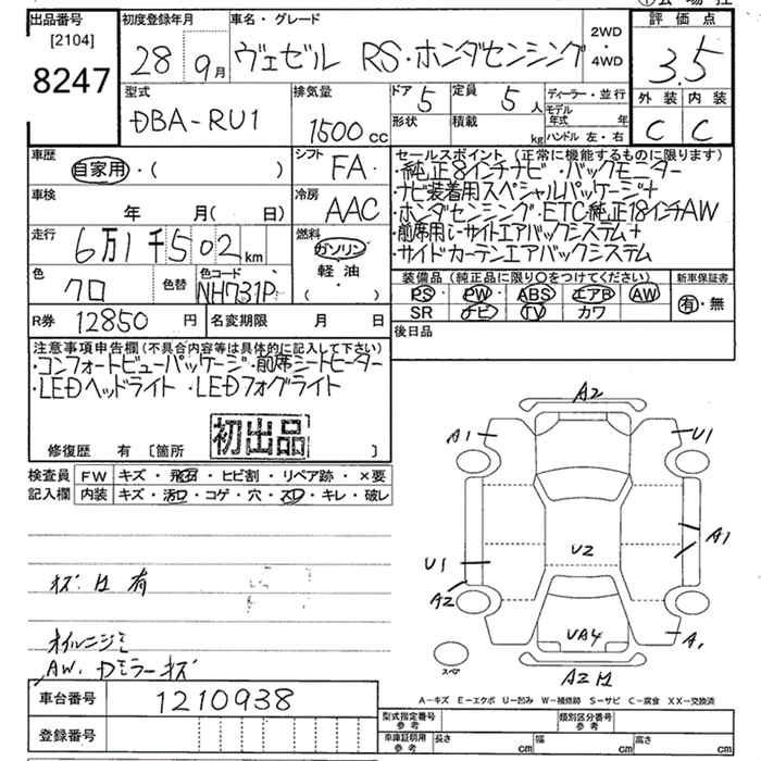 HONDA VEZEL - лот 8247