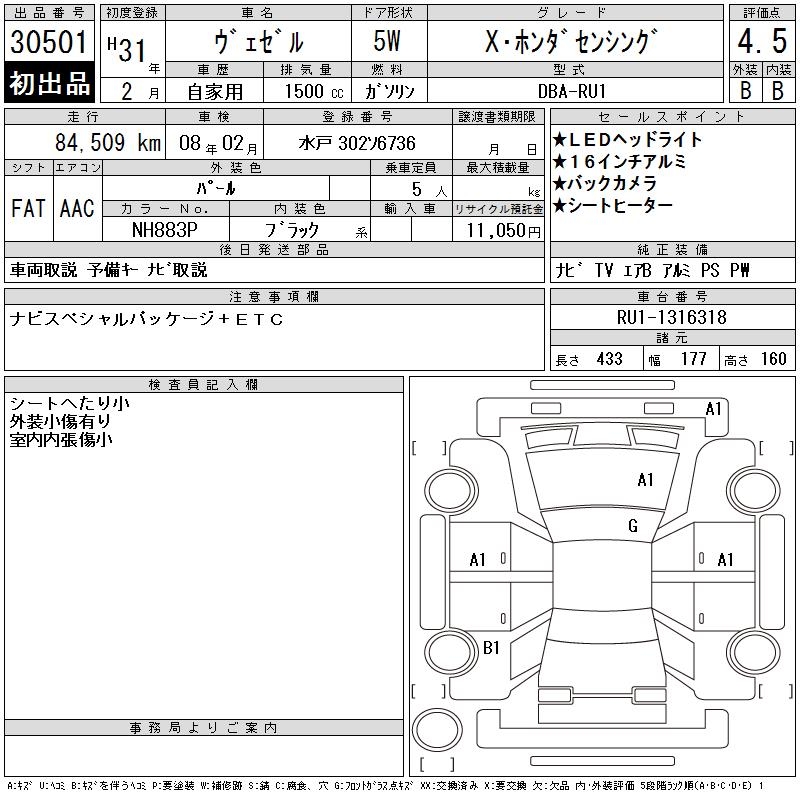 HONDA VEZEL - лот 30501