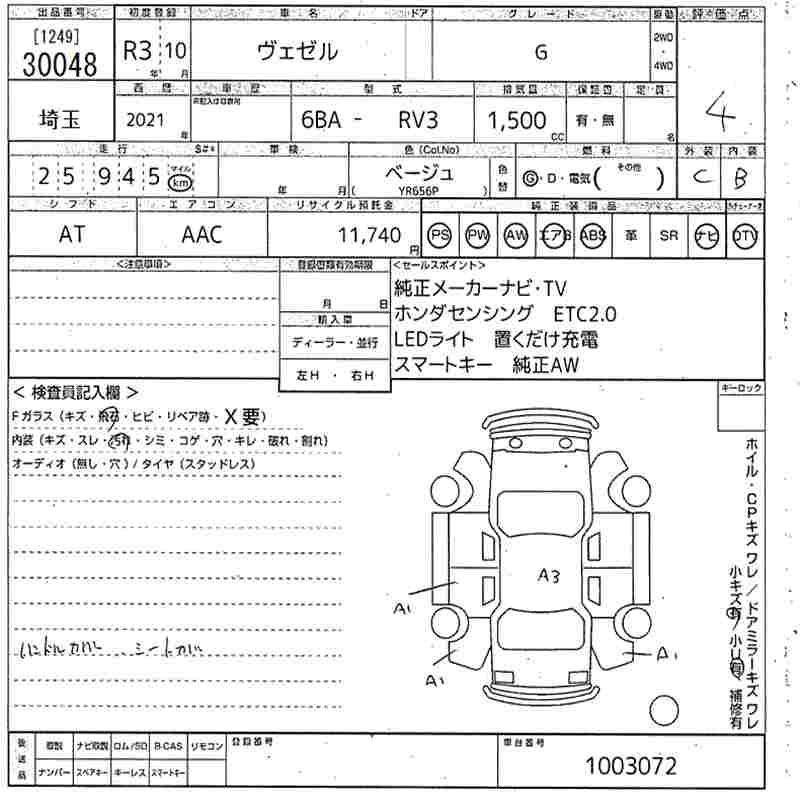 HONDA VEZEL - лот 30048