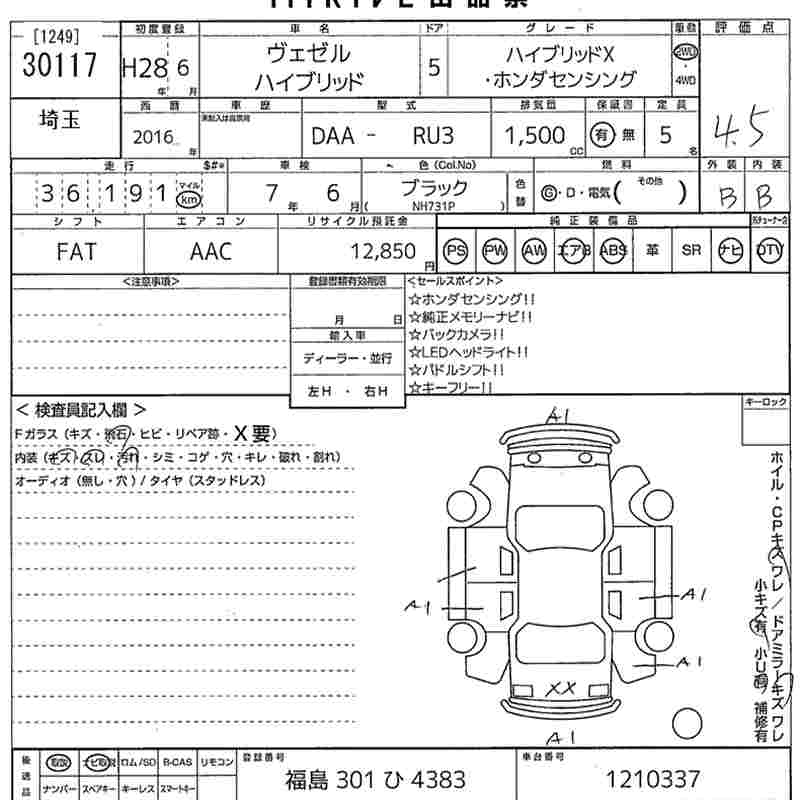 HONDA VEZEL - лот 30117