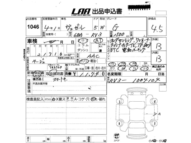HONDA VEZEL - лот 1046