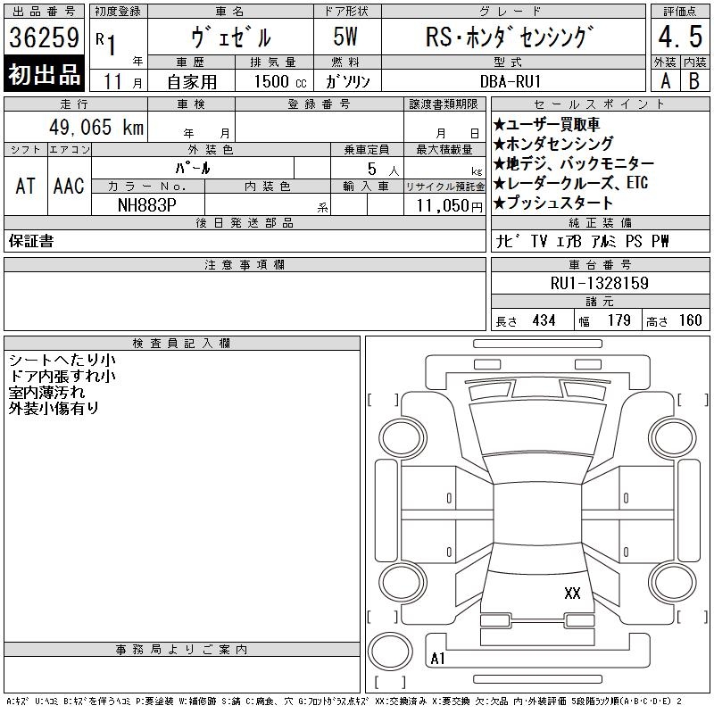 HONDA VEZEL - лот 36259