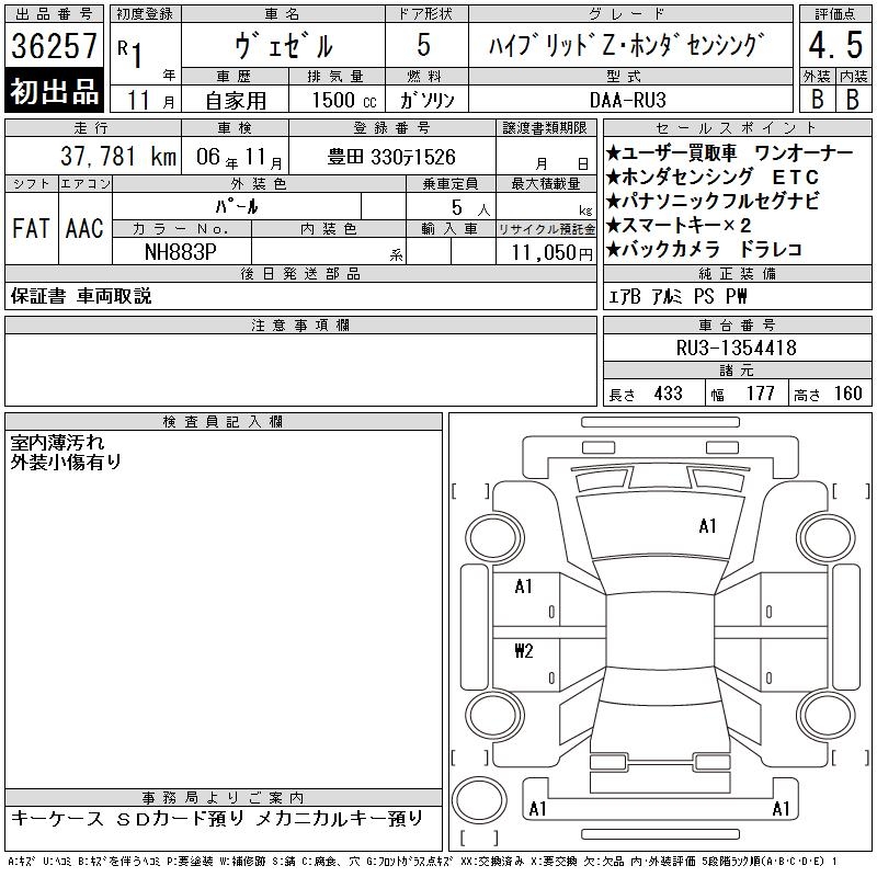 HONDA VEZEL - лот 36257