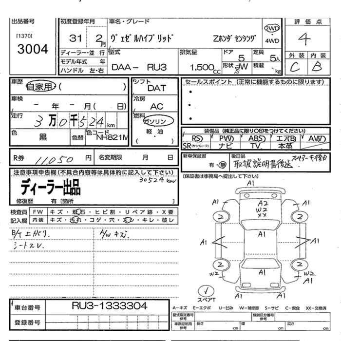 HONDA VEZEL - лот 3004