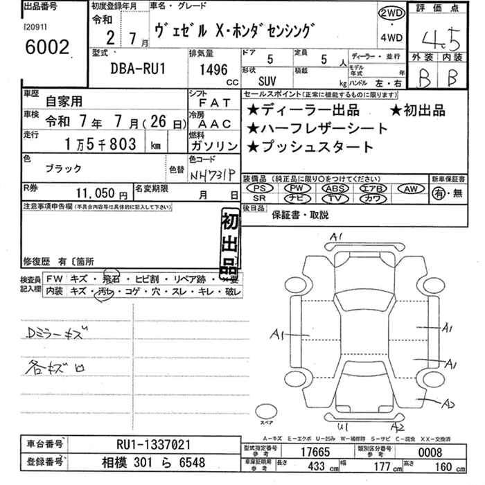 HONDA VEZEL - лот 6002