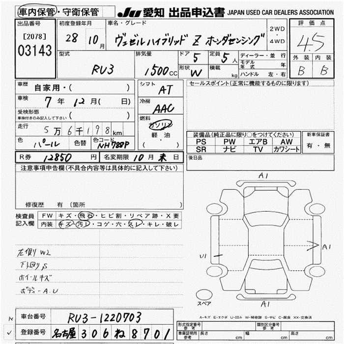 HONDA VEZEL - лот 3143