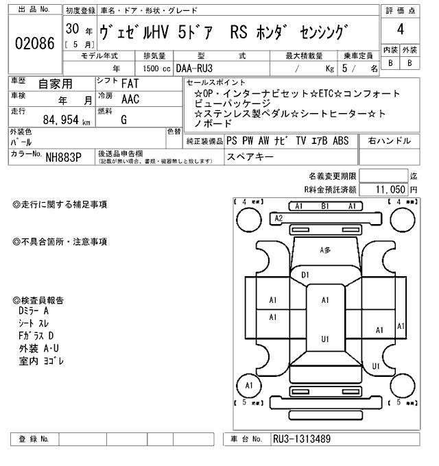 HONDA VEZEL - лот 2086