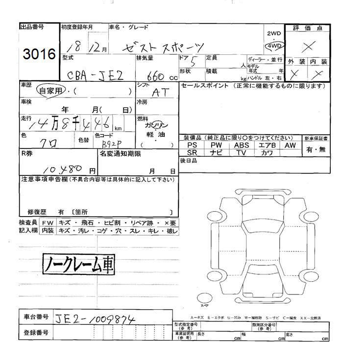 HONDA ZEST - лот 3016