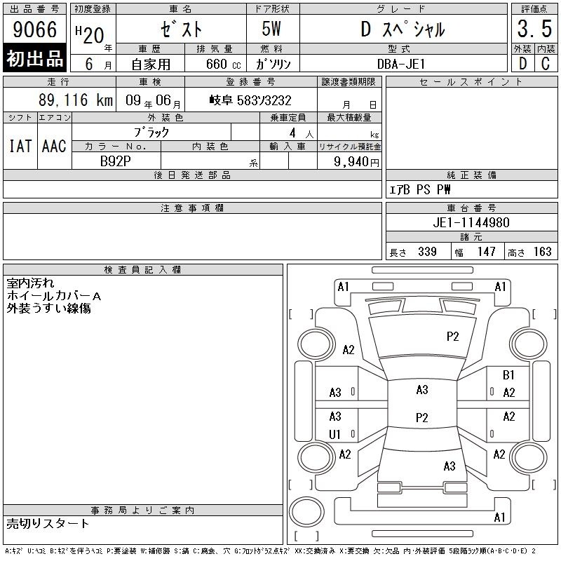 HONDA ZEST - лот 9066
