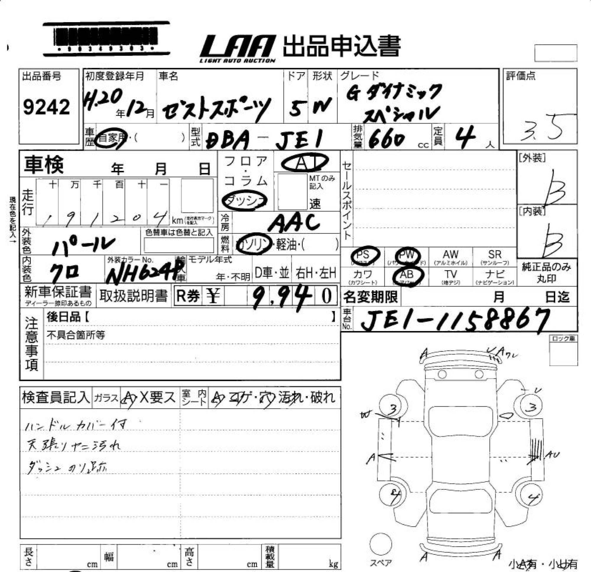 HONDA ZEST - лот 9242