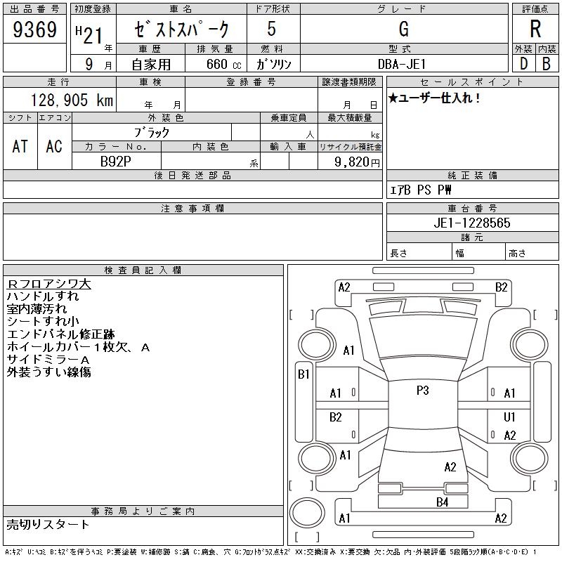 HONDA ZEST SPARK - лот 9369