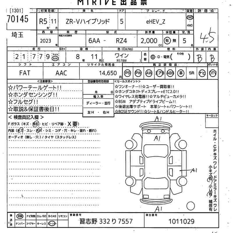 Все аукционы HONDA ZR-V