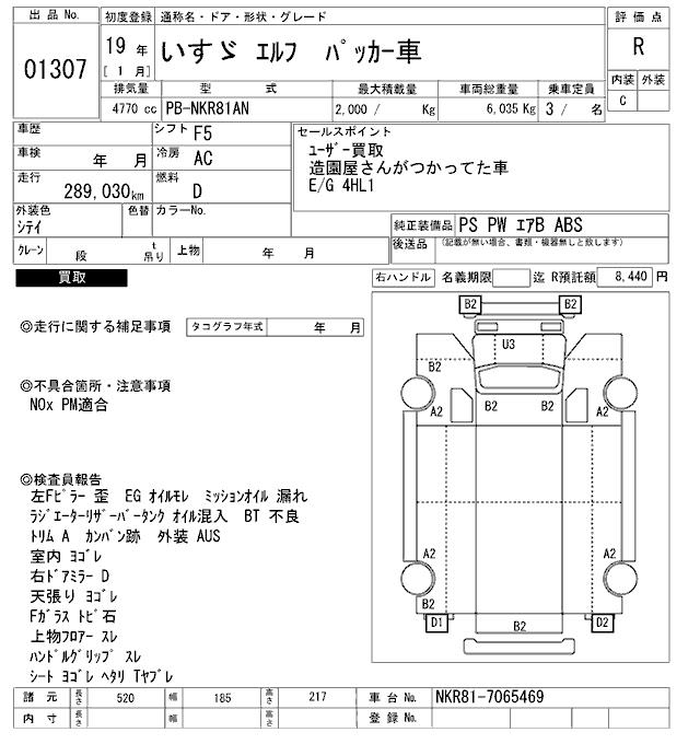 Оборудование: PS PW подушка безопасности ABS расстояние 289,030km депозит уплачен 8,440 иен