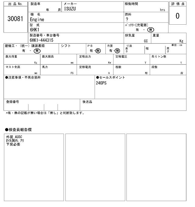 ISUZU ENGINE Isuzu - лот 30081