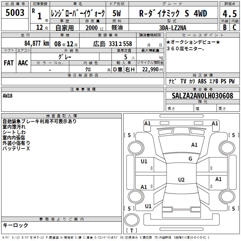 LAND ROVER RANGE ROVER EVOQUE - лот 5003