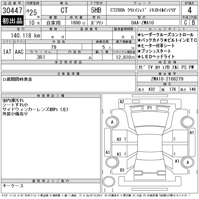 LEXUS CT CT200HKLIEITIBTE YELLOW STYLE - лот 30447