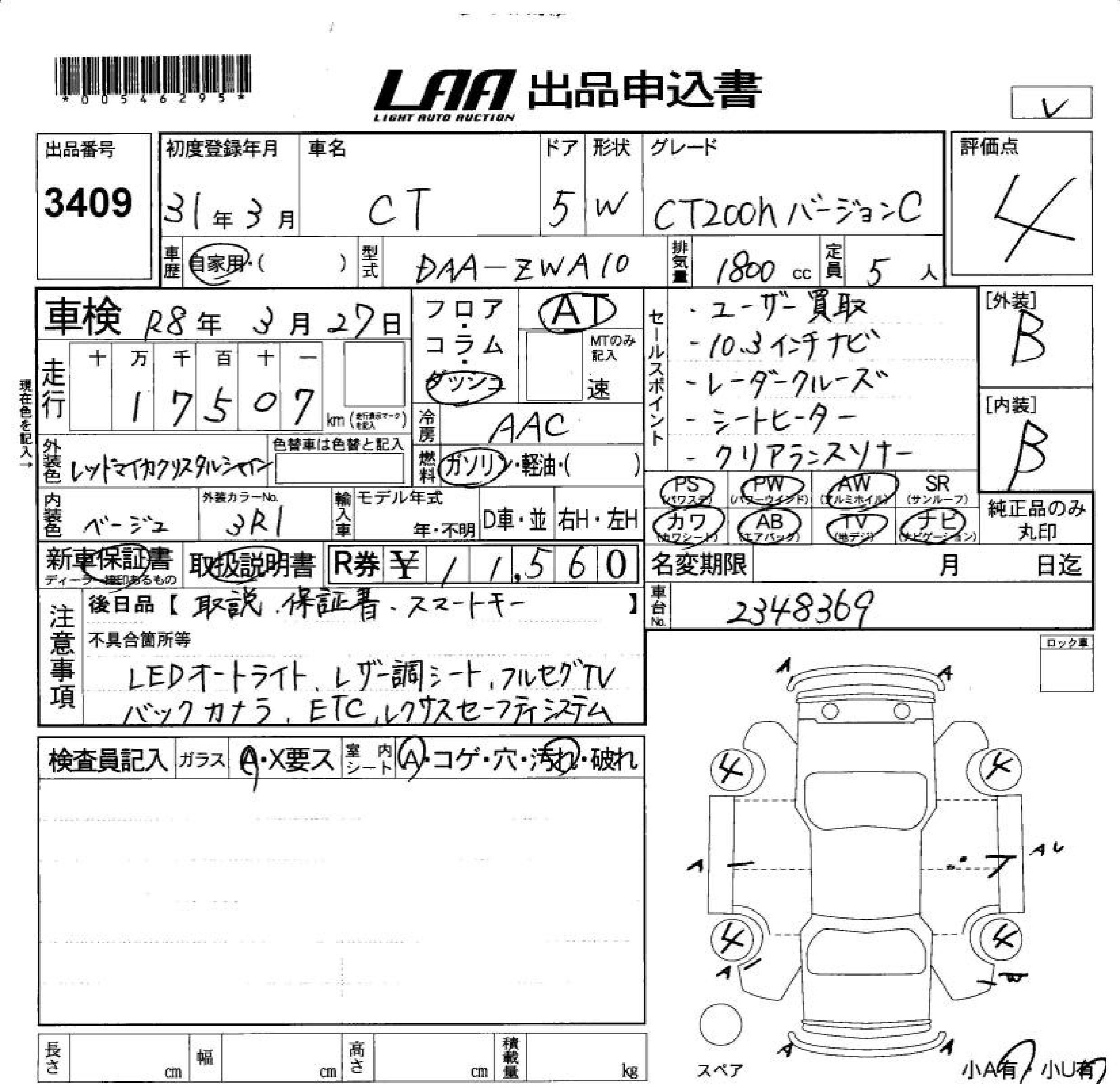 LEXUS CT CT200H VERSION C - лот 3409