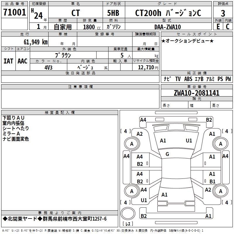 LEXUS CT CT200H VERSION C - лот 71001