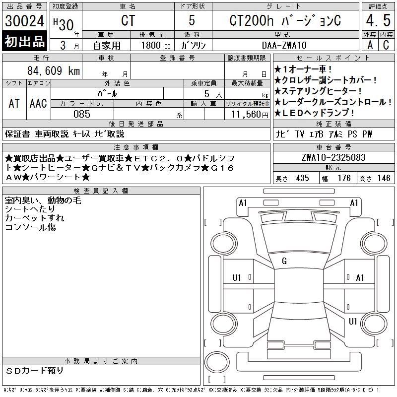 LEXUS CT CT200H VERSION C - лот 30024