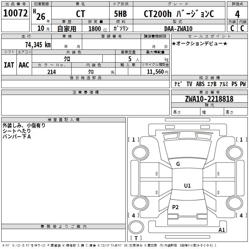 LEXUS CT CT200H VERSION C - лот 10072