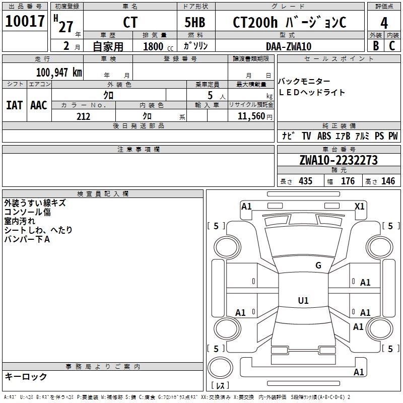 LEXUS CT CT200H VERSION C - лот 10017