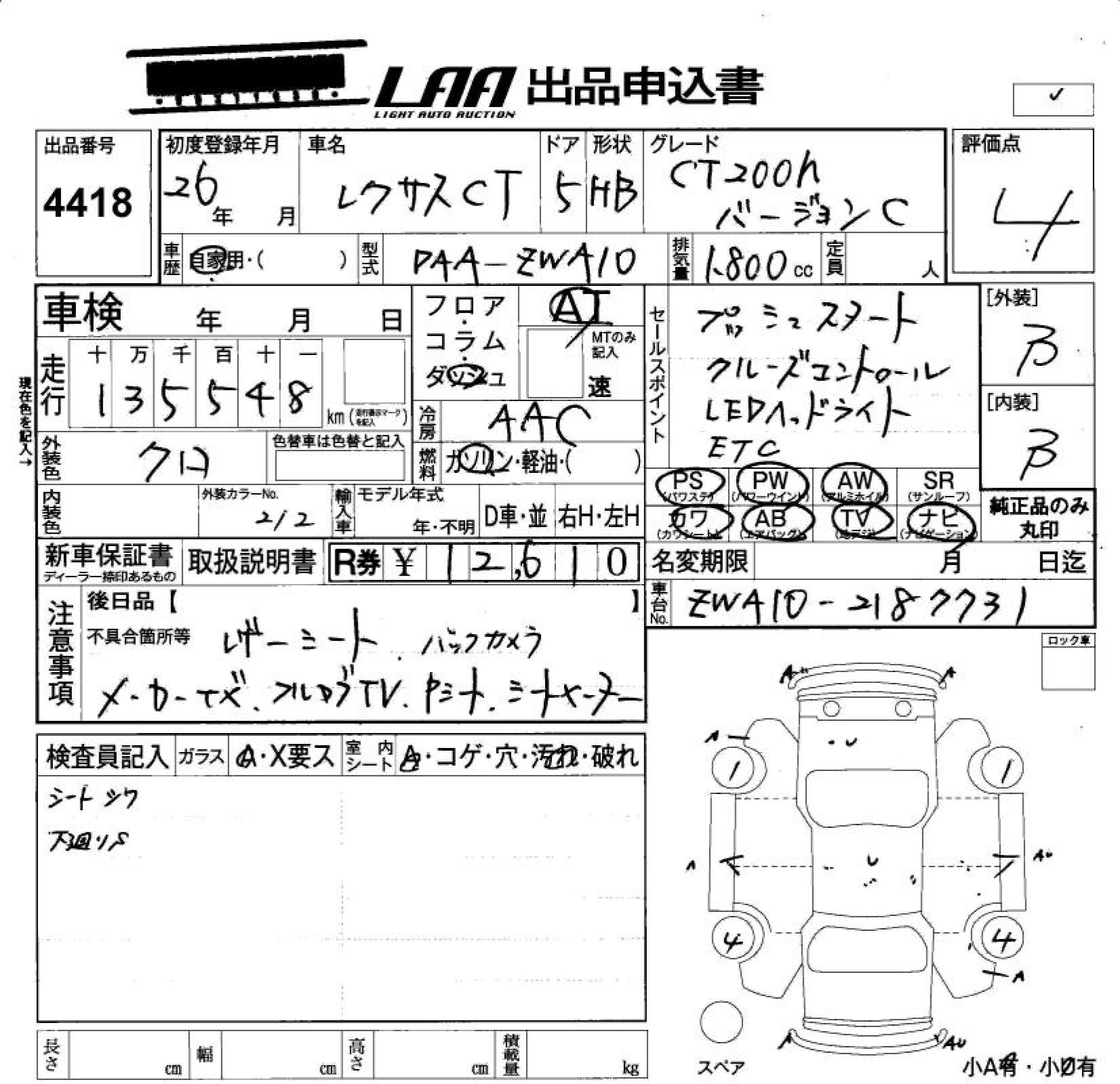 LEXUS CT CT200H VERSION C - лот 4418