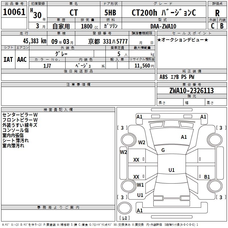 LEXUS CT CT200H VERSION C - лот 10061