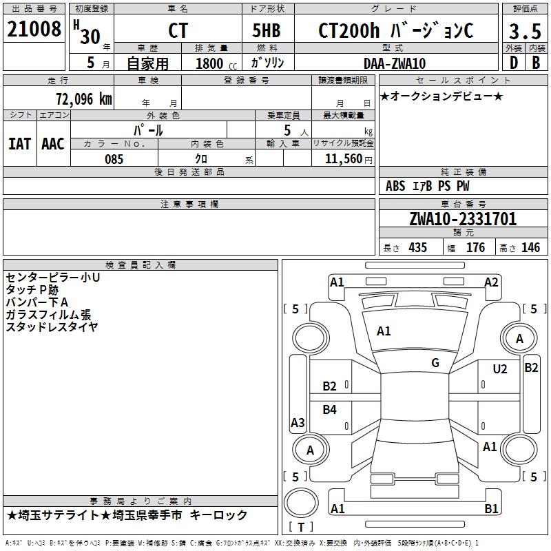 LEXUS CT CT200H VERSION C - лот 21008
